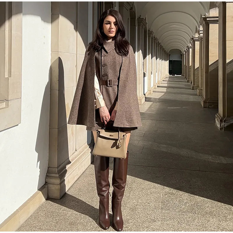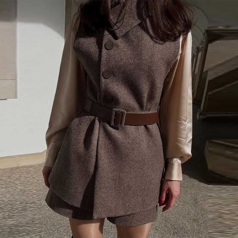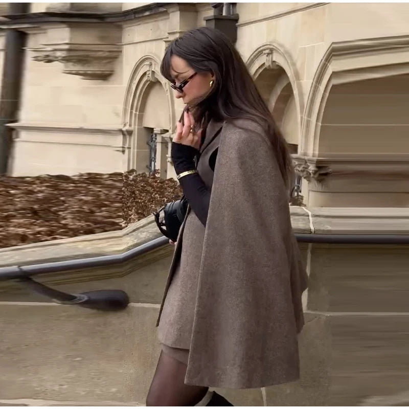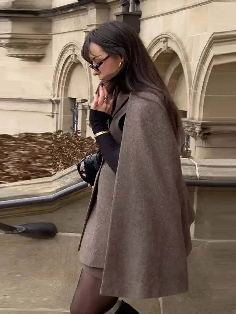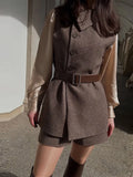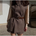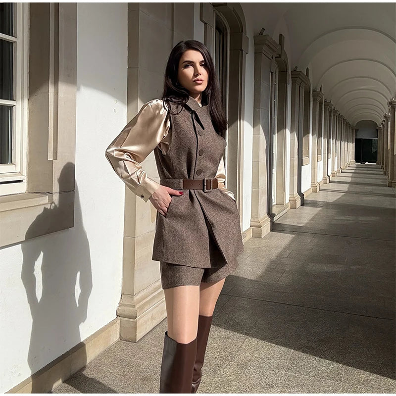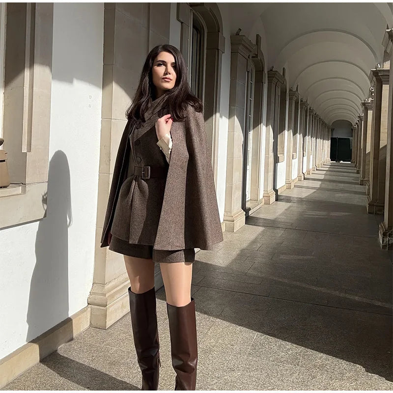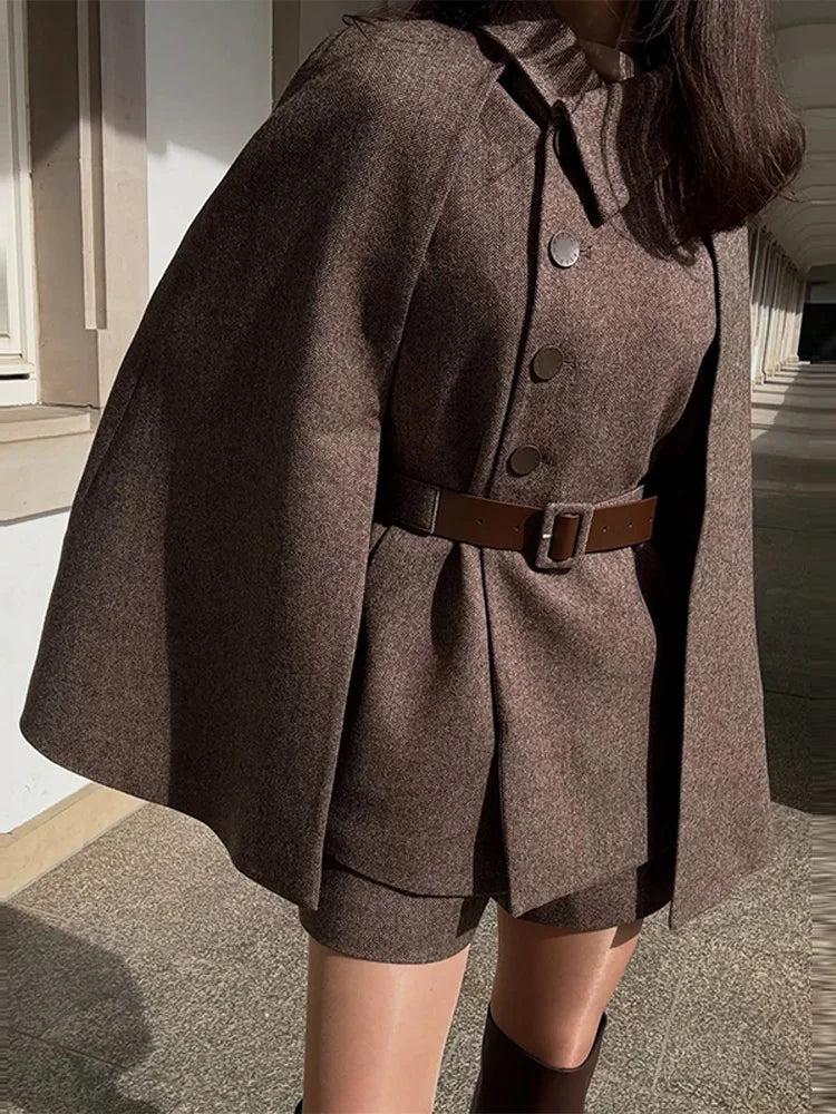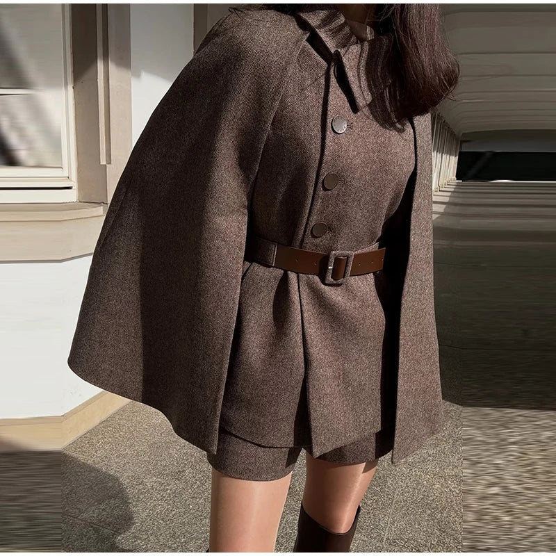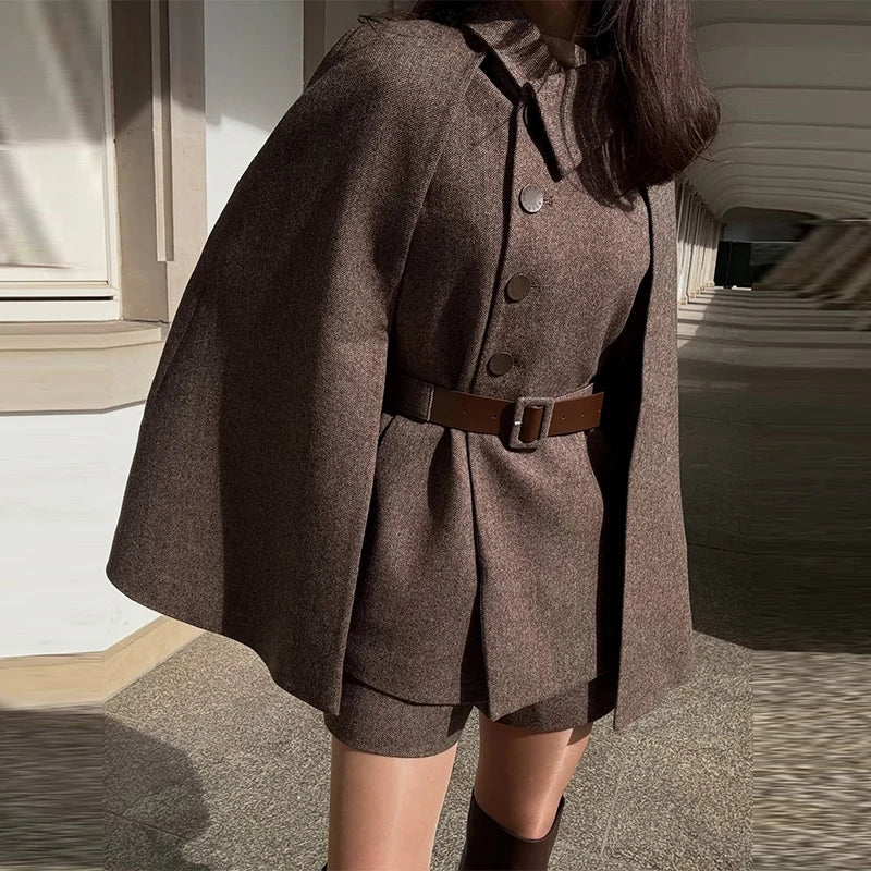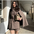Chic Solid Color Elegant Woman Three Piece Set Detachable Cape Lapel Breasted Vest High Waist Shorts Versatile Women's New Suits