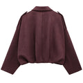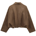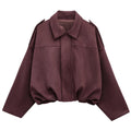 HXAO Women's Bomber Jacket Lapel Long Sleeve Zipper Suede Jacket Women 2025 High Street Cropped Racing Jackets Coats Outerwears
