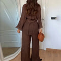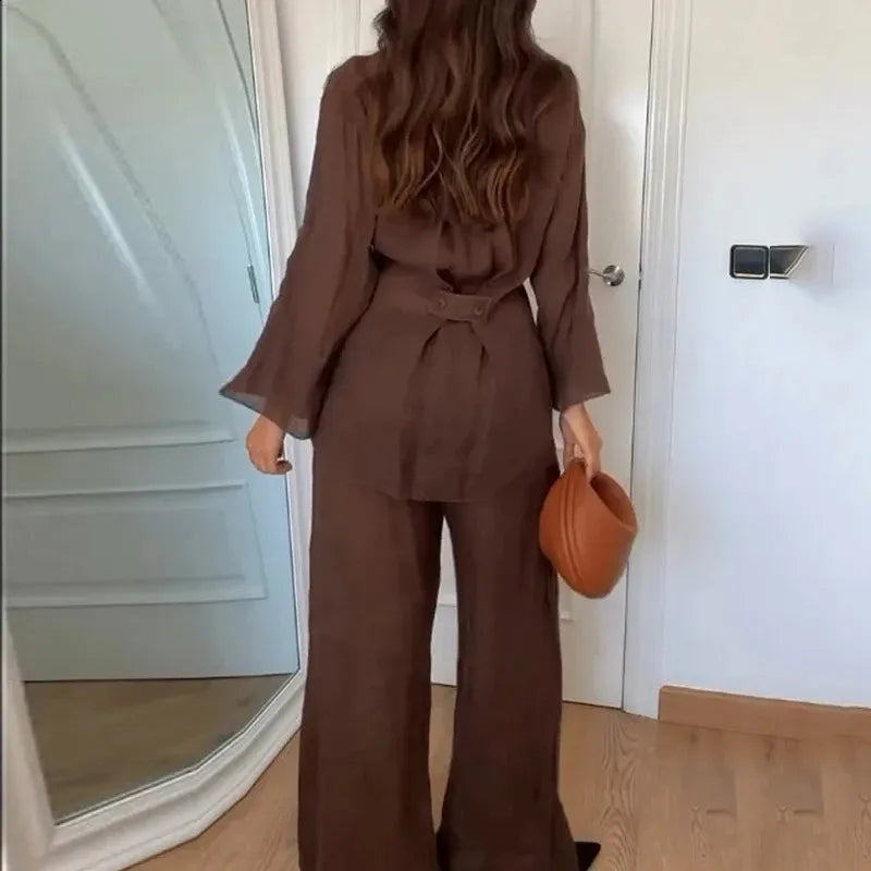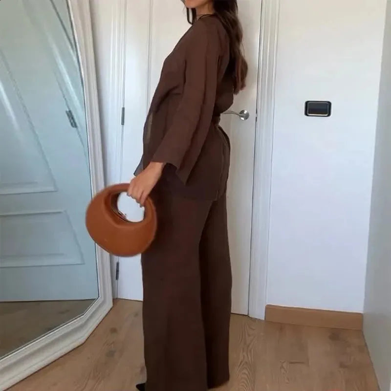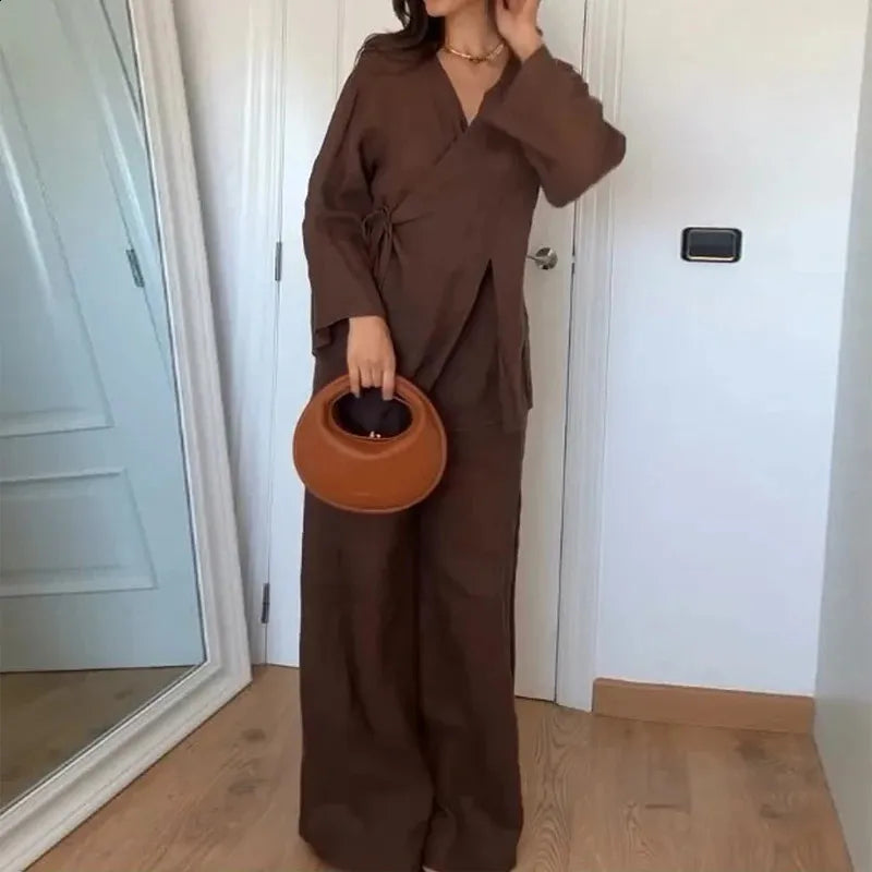 KONDALA Fall Casual Chic Loose Set Women Set Fashion 2025 Spring Autumn Long Sleeve Kimono Crossover Jacket+Pants NightWear Suit