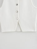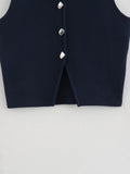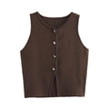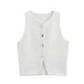 MUJER Pink Knit Sleeveless Vest Women Cropped Sweater Vest Top Women Yellow Button Vests Women Streetwear Waistcoat Knitwears