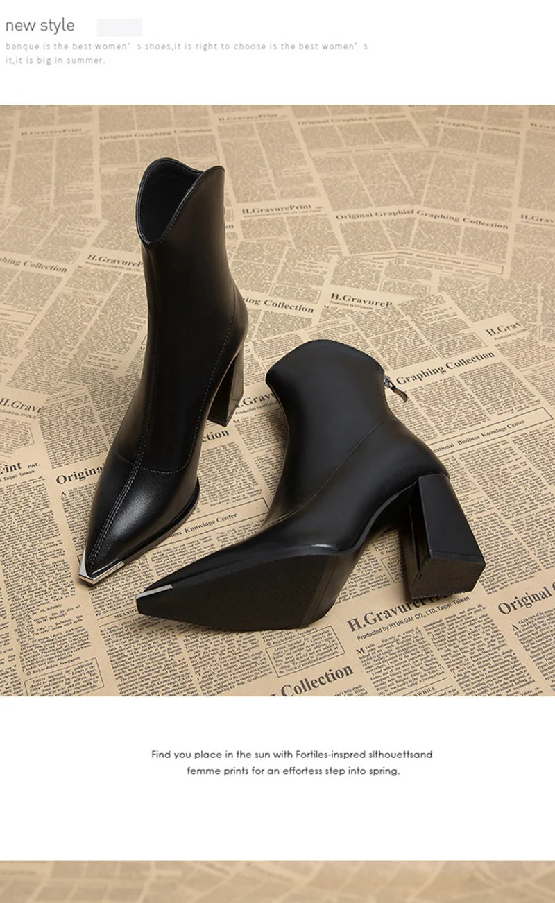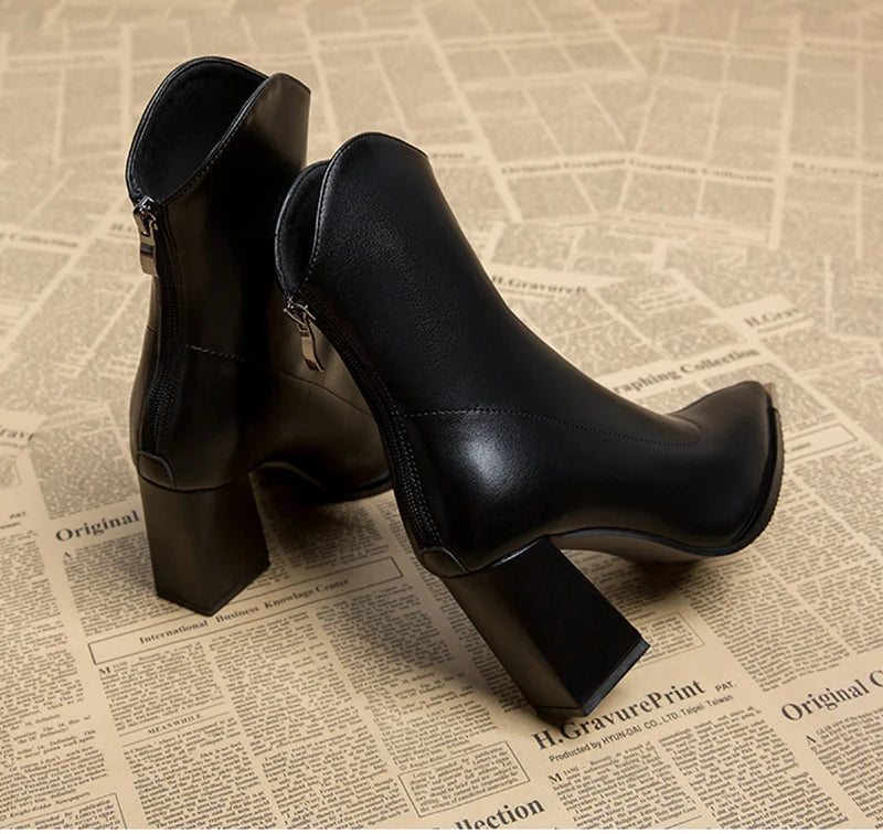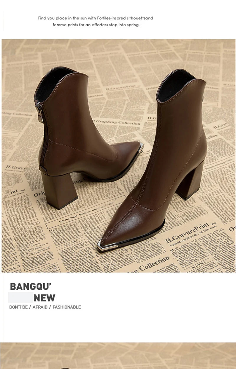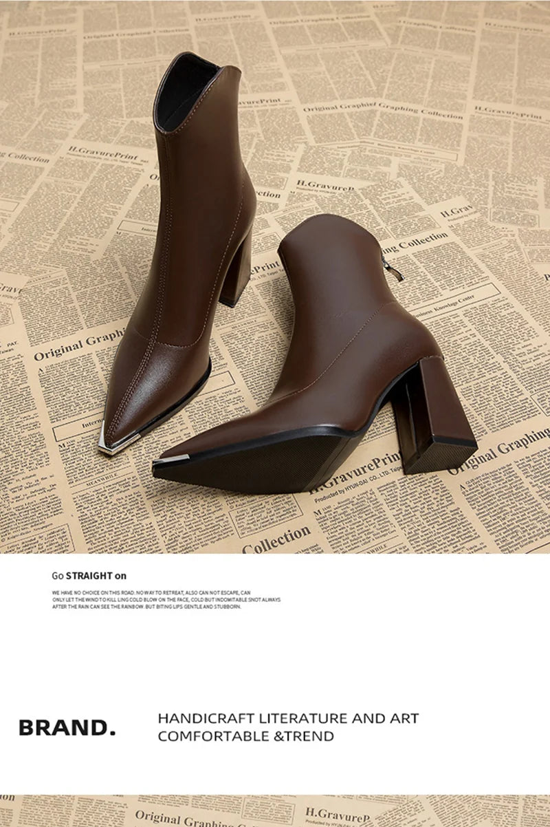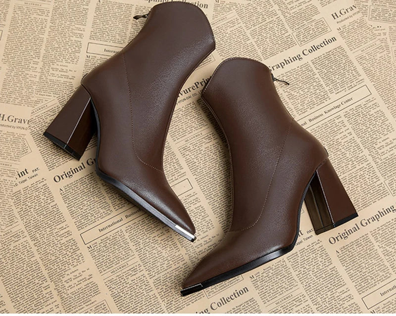 Pointed Toe Women's Ankle Boots Fashion Back Zippers Short Botas Ladies Elegant Square High Heel Winter Women's Footwear