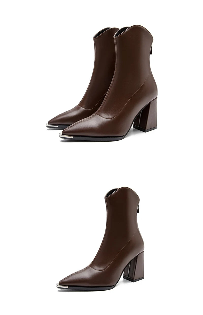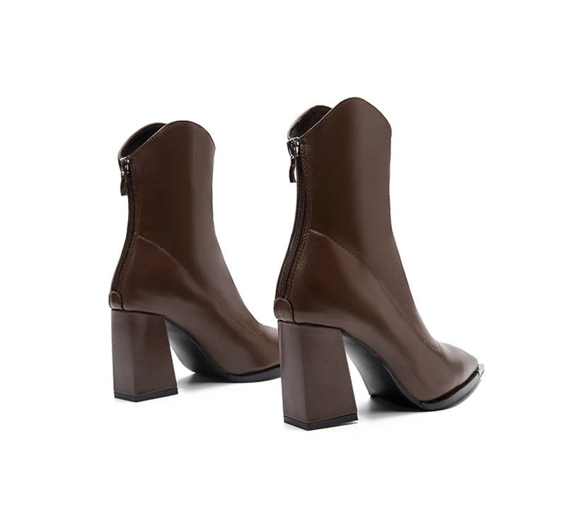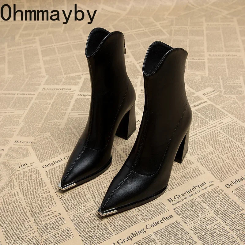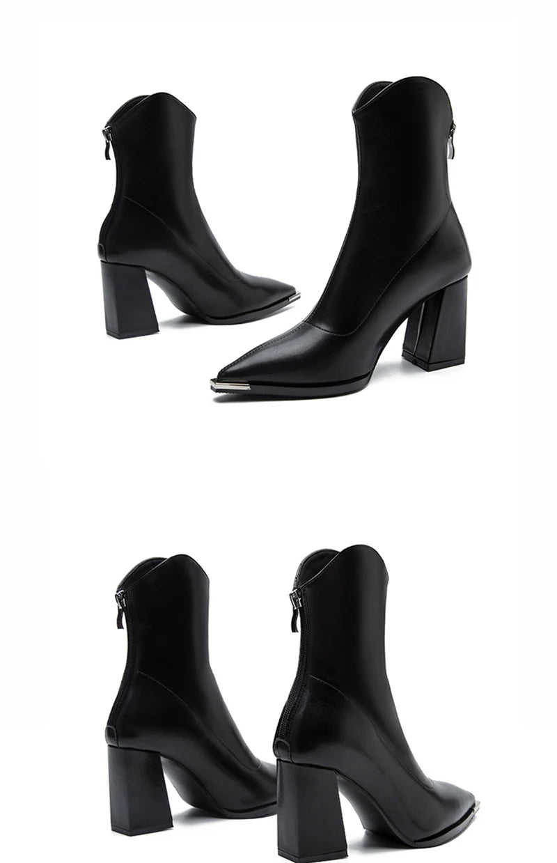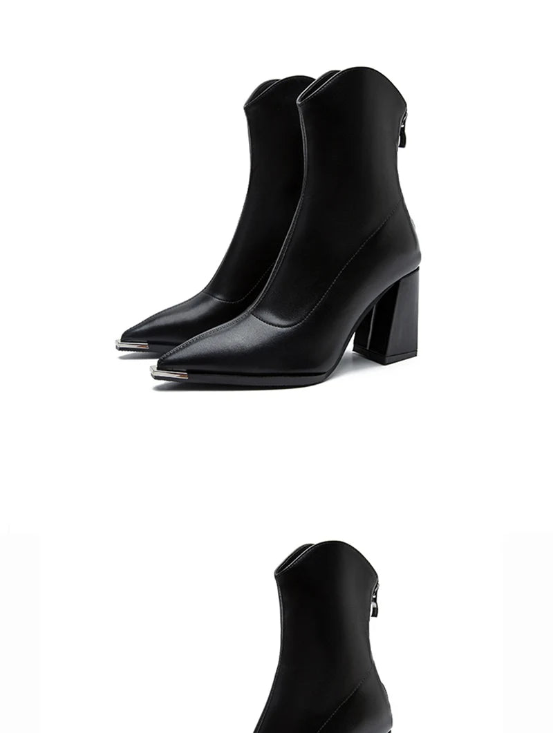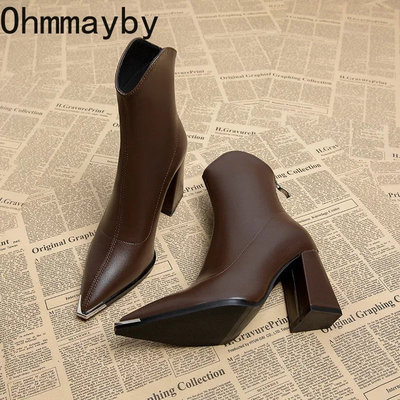 Pointed Toe Women's Ankle Boots Fashion Back Zippers Short Botas Ladies Elegant Square High Heel Winter Women's Footwear