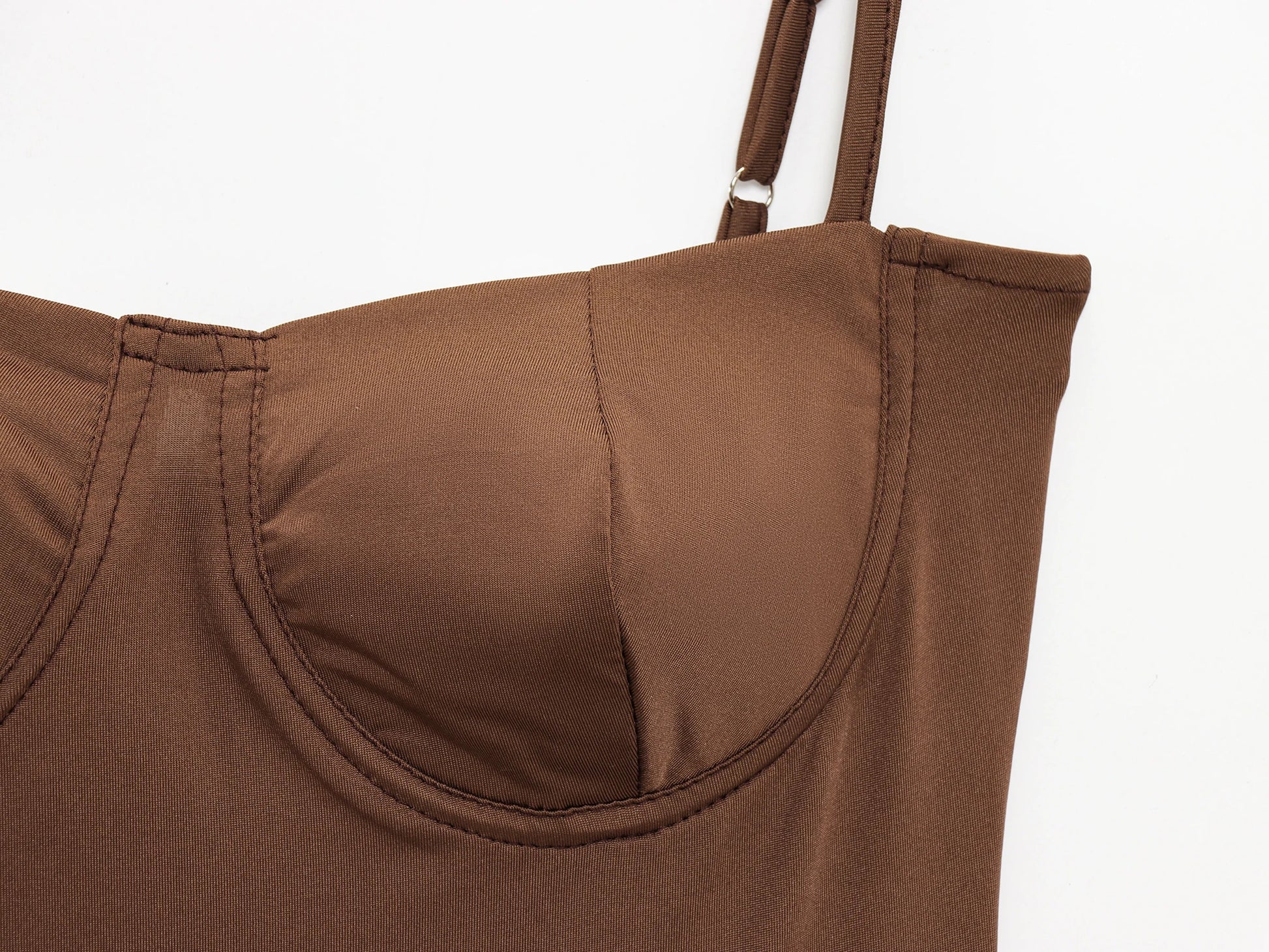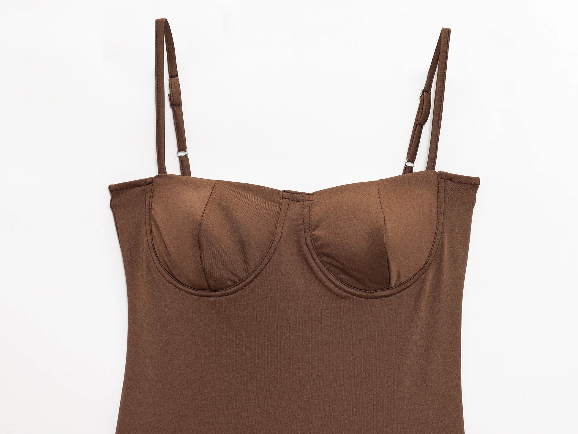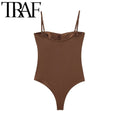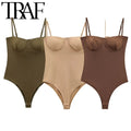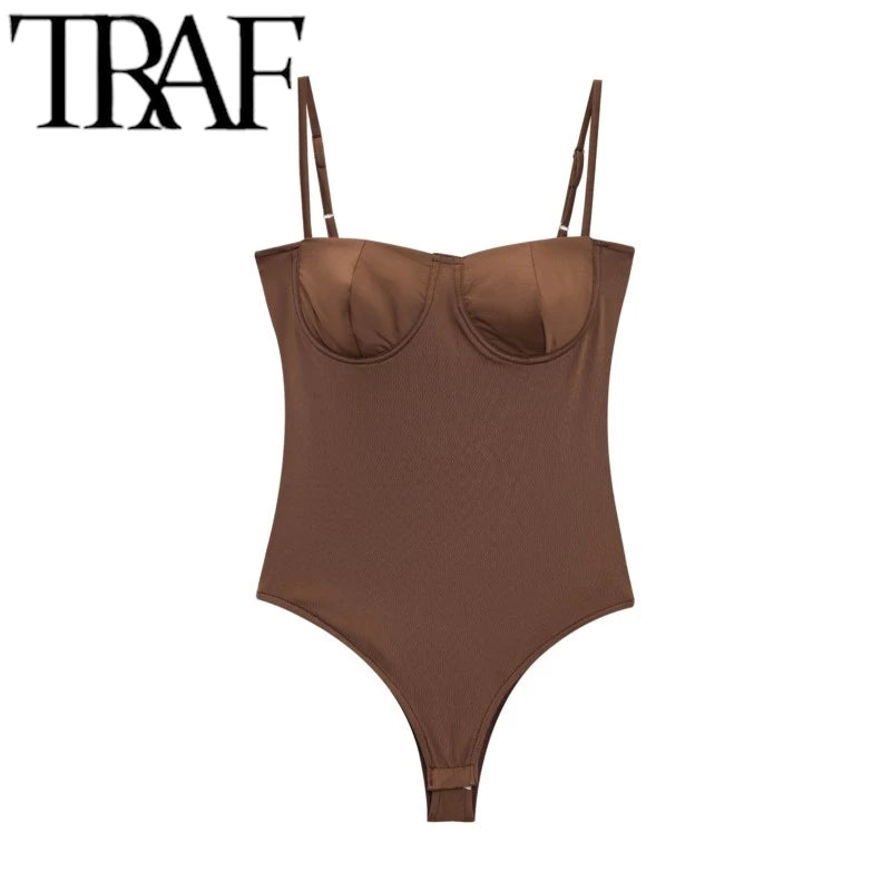 Soft 2025 Woman Fashion Cup Silk Satin Texture Underwear Style Jumpsuit Casual Slim Halter Bodysuits Summer Autumn