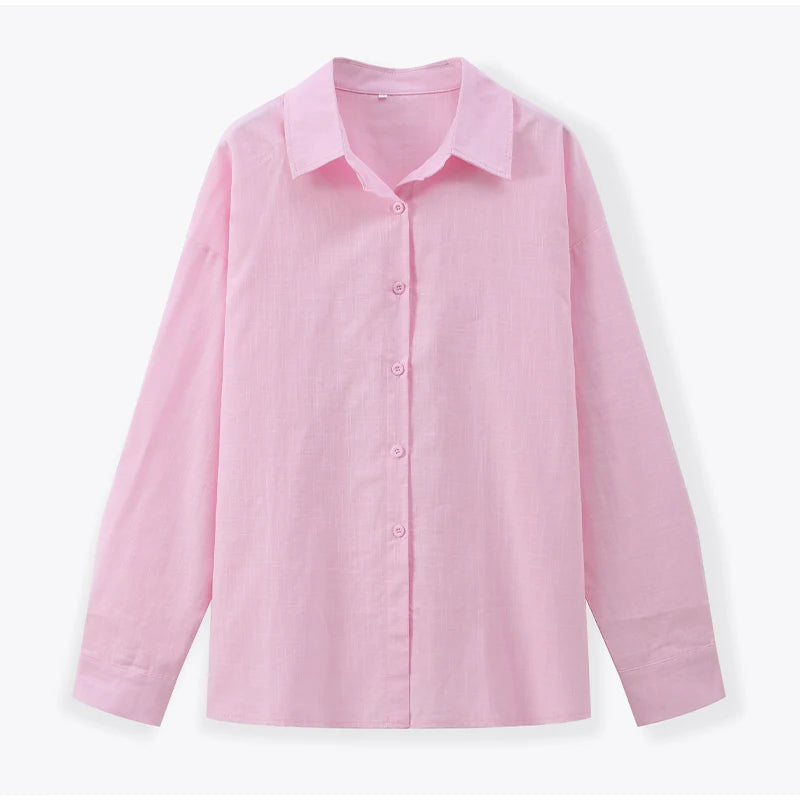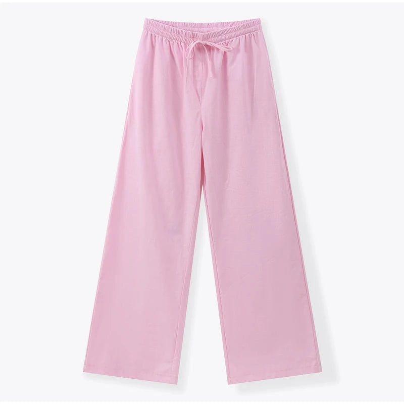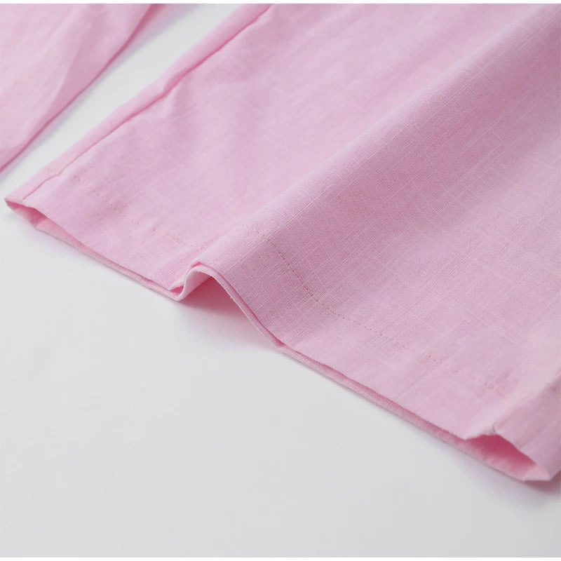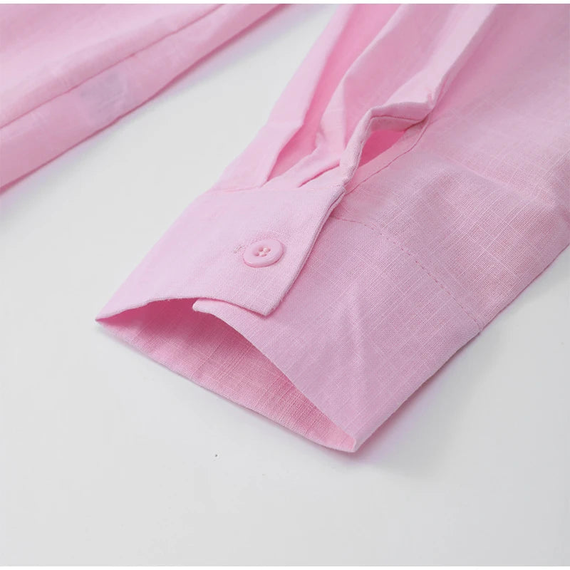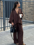 Women Casual Brown Cotton Linen Shirt Pants Suit Fashion Single Breasted Blouses Elastic Waist Pant Set 2025 Spring Loose Outfit