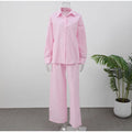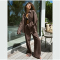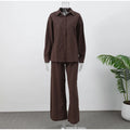 Model Number: Women Casual Brown Cotton Linen Shirt Pants Suit